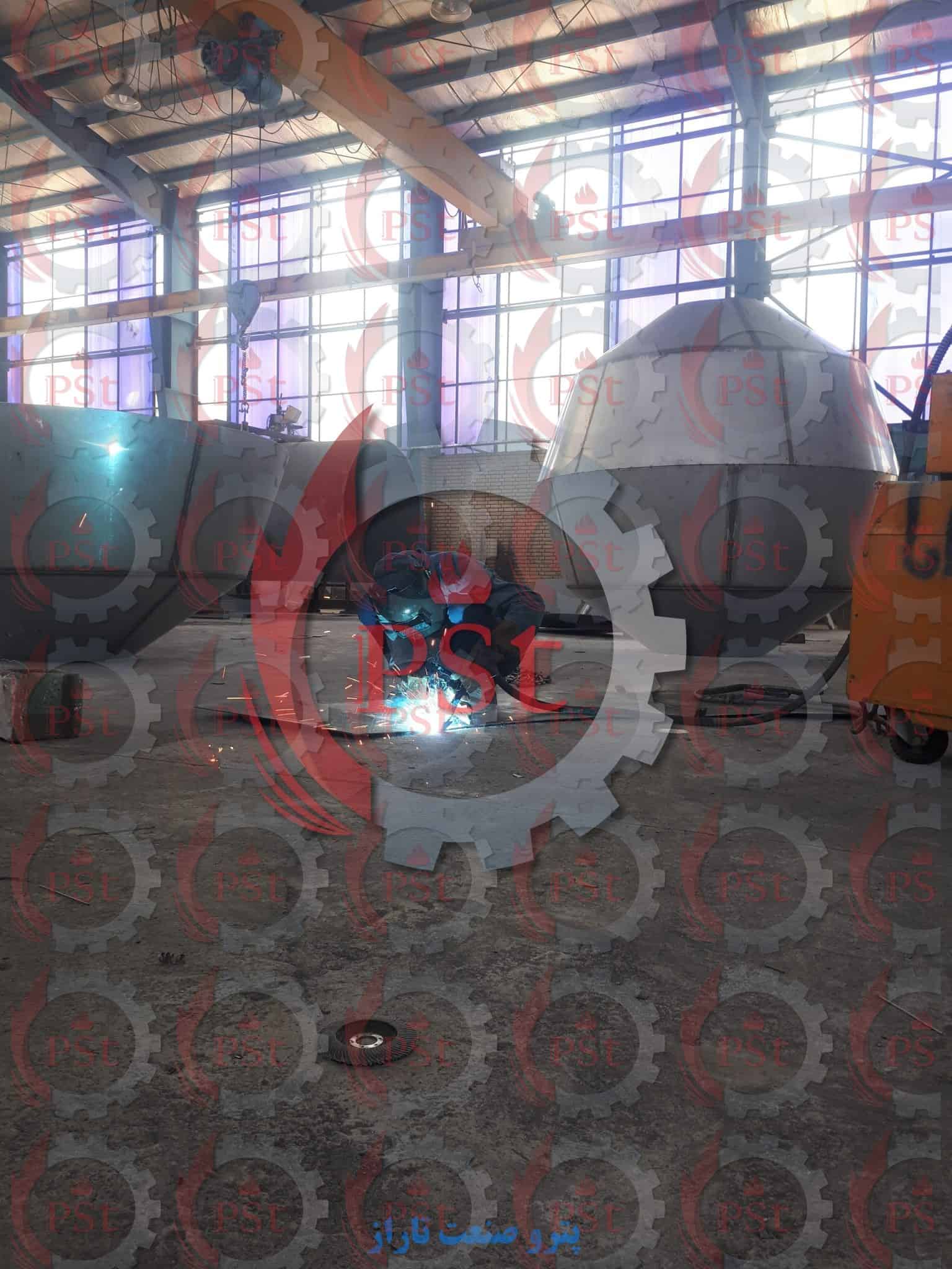 مخازن تحت فشار ساخته شده در کارگاه از ابتدا تا انتها در تاسیسات ما ساخته می شوند. مخازن ذخیره سازی با ابعاد بیش از ۲۵ در ۲۰ متر در مجموعه های فرعی ساخته می شوند. این بخش ها در کارگاه ما برش، نورد و تکمیل می شوند و سپس توسط متخصصان آموزش دیده ما در محل مونتاژ می شوند.